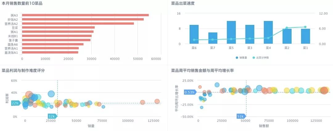 由于在抢鲜到平台不同品牌、不同的菜品品类都由平台统一规划营销运营,因此如何构建最优的菜品体系,打造爆品,是抢鲜到平台面临的新挑战。观远数据通过销售数据的深度分析,实时反馈关键菜品的贡献度,新品的推广情况,不同季节菜品的销售表现,并通过菜品交叉分析模型给到平台最优的搭配建议,及时调整菜单体系。