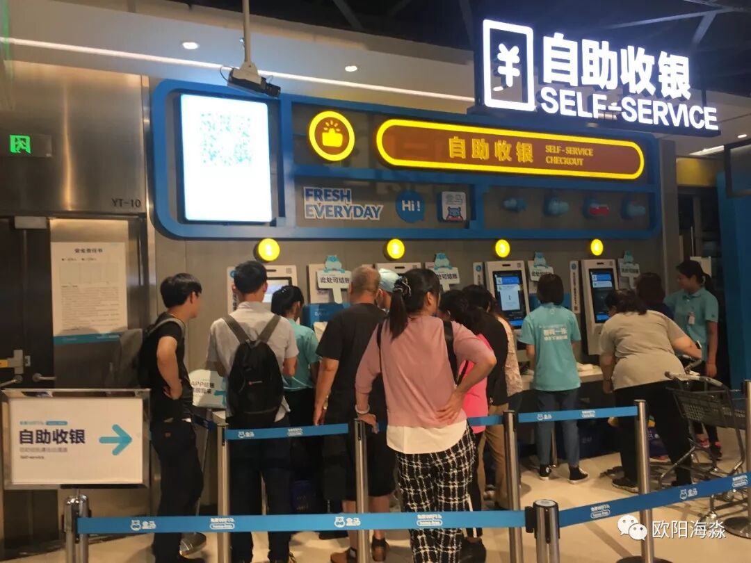 超市鼓励顾客下载APP,直接自助扫描APP买单,提高效率,同时线上引流。同时,开业初期为了方便部分顾客,也开启了少量现金收银通道。但不管什么时候去,永远是满满当当的客流。