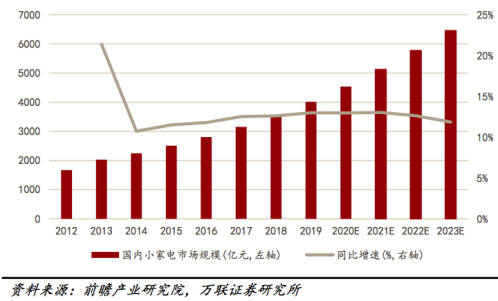 而且据前瞻产业研究院的报告显示,2019年我国小家电的市场规模达到了4015亿元,预计到2023年将会超过6460亿美元。所以就算去年小家电市场的暴涨的泡沫被戳破,但未来的中国小家电市场还是有很大的发展潜力。