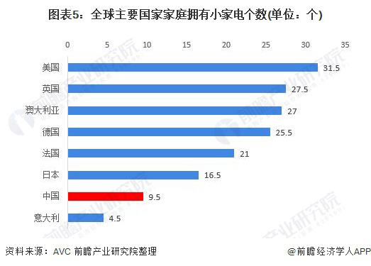 另外据数据统计,美国家庭小家电个数约为31.5个,英国、德国等家庭小家电数量在20—30个之间,中国家庭拥有小家电数量仅为9.5个。