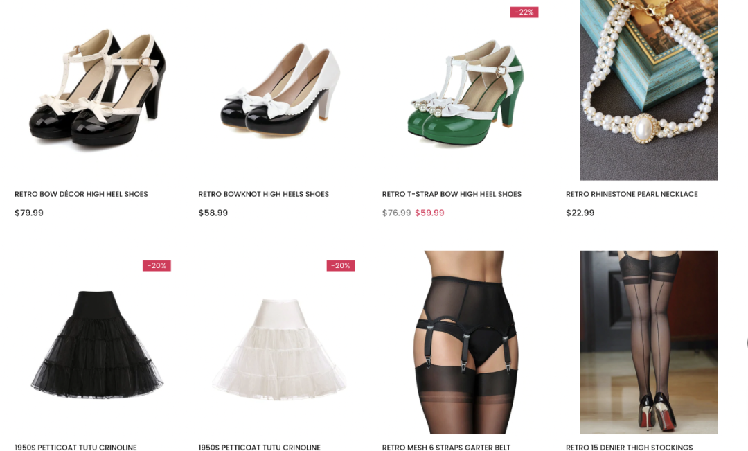 比起将折扣放在首页醒目位置、连衣裙6美元、牛仔裤10美元的SHEIN,赛维时代旗下各个不同定位的品牌,价格都高于前者:卖复古女装的独立站RETRO STAGE服装至少30美元起。主打美式休闲风格女装的独立站Sheshow,一件普通的吊带也得30多美元,T恤在20多美元。其各平台上的平均客单价在500元人民币左右,略高于平均客单价为70美元(约合人民币442元)的SHEIN。
