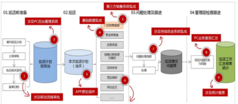 我们知道,零售连锁业是较低毛利生意,很多时候零售企业需要依靠规模效应才能维持盈利生存,而信息化、标准化流程可以将规模效应的影响发挥到极致。因此,一般零售连锁企业都制定一套巡店制度,保持一个固定的标准,让下面的门店和部门有计划、有系统地执行每件事情,从店员到管理层到高层,都依照这套制度巡店,管理每一个细节。然而这种传统人工巡店+信息化模式仍然多被诟病,在信息多如牛毛、流程复杂多变的管理中,其效率逐渐递减,“鞭长莫及”、“远水解不了近渴”、“山高皇帝远”的现象屡见不鲜。尤其是在如今移动互联网信息高速发展的时代,过去传统的人工巡店模式就变成了一种高成本、低效率的工作,已经成为了连锁业的另一种严重负担。因此,不少的连锁企业力求能够通过移动化、专业化、实时化的信息技术来解决巡店效率低、决策慢、难于即时管理的问题。