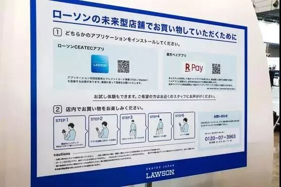 在展示时最让媒体感兴趣和关心的是使用RFID(无线射频识别)标签的“进出自动结算”的体验区。将在店里面选择的商品放进购物袋,用事先选择结算方式的智能手机扫描二维码之后,走出大门就结算完了,随后电子结算单就被推送到智能手机上,但要事先下载好手机软件。