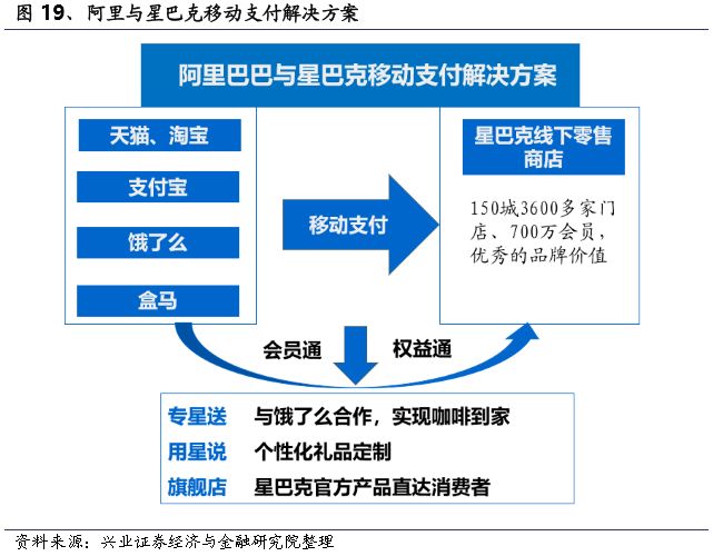 阿里与星巴克为消费者提供的集银行卡、支付宝等支付方式于一体的全方位、一体化的支付解决方案,满足了用户更方便快捷的支付需求。通过使用移动支付,推动了星巴克的数字化转型,再加上强大的会员体系,完善的消费激励制度,使得星巴克的服务半径进一步扩大、渗透更多样化的消费人群,也为其构建了良好的支付生态系统。