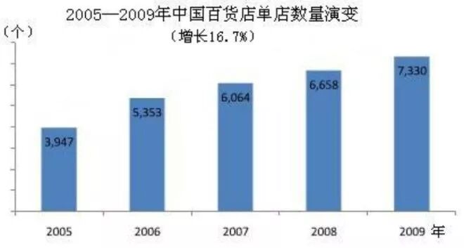 根据华威集团(CID)在2010年10月到12月对全国30个城市120家百货店调研得出的结论,2003年以后,百货店发展呈现出速度快、规模大的显著特点。