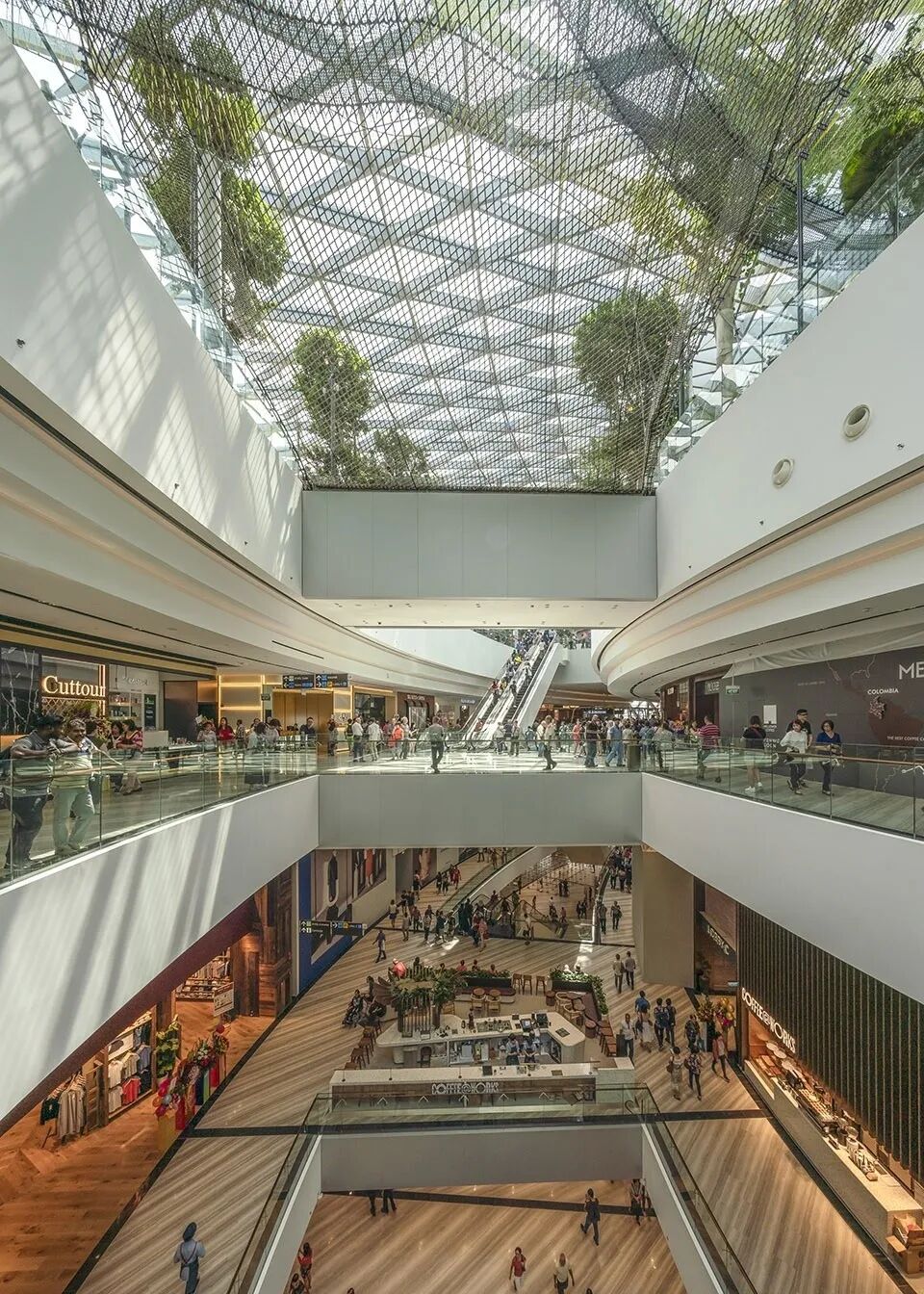 04 VIVO City 怡丰城 怡丰城坐落于圣淘沙岛对面的滨水之地,风景秀美,是一个惬意、有趣的购物中心,也是本地最大的一站式购物中心。 该项目外立面极具美感,白色的流线型建筑,既像涌动的海浪,又像徐徐的微风。让行走在购物中心里的人们如在海上扬帆一般自由自在。 顶楼设置的空中花园和层层退台,营造了许多可供人们放松休息的场所,并且还能在此饱览到新加坡的绝佳海景。