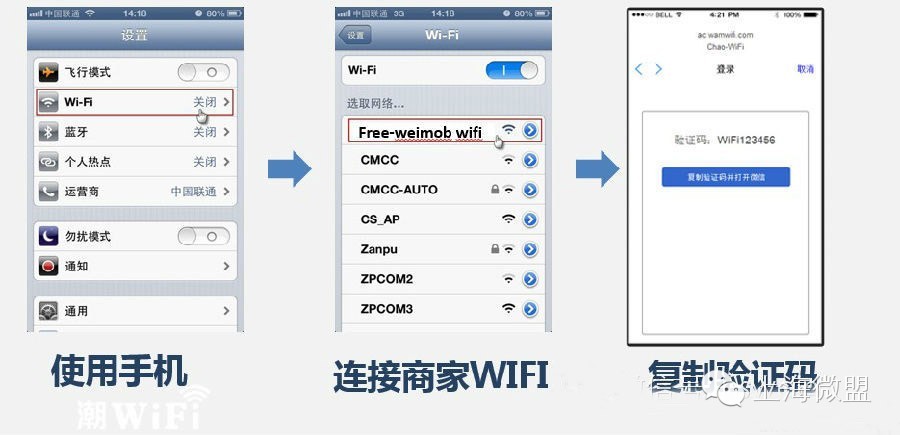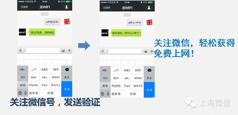 微盟wifi因其可以免费上网,被广大客户所需要。凡是进店的客户,拿出手机-打开wifi-关注企业微信-开始上网。客户要使用wifi必须关注企业微信号,强制关注,强制吸粉,在极短的时间内获得大量有质量的粉丝。微盟wifi完美的解决了如何将进店的客户转化为公众平台粉丝的问题。
